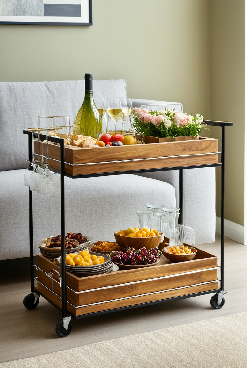 Q: Как сервировочная тележка способствует созданию домашнего уюта и является эффективным интерьерным решением?