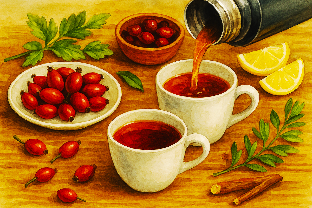 Поэтому важно не заваривать шиповник кипятком, а использовать слегка остывшую воду — тёплую, но не горячую. Исследования показывают: уровень pH воды влияет даже сильнее, чем температура.
