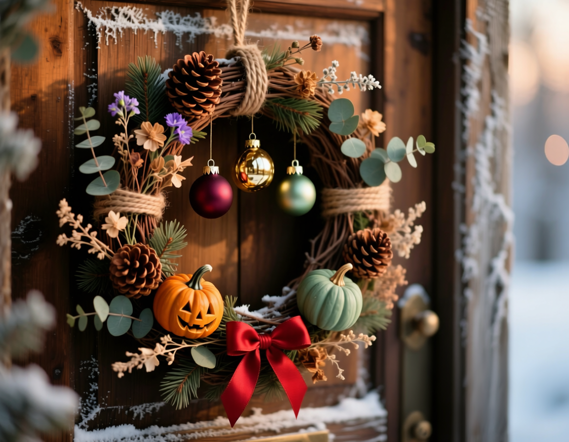 Не убирайте тыквы! Показываю, как добавить к осеннему уюту всего несколько деталей, чтобы ваш дом постепенно и стильно наполнялся новогодней магией. Вчера мы с вами составили умный список продуктов, который сэкономит нам деньги в декабре. А что, если я скажу, что с декором можно поступить так же хитрo? Не нужно резко менять осенний уют на зимнюю метель. Давайте делать это постепенно, создавая особенное, «предновогоднее» настроение, которое будет радовать вас все эти месяцы. Мой главный принцип: база — осенняя, акценты — новогодние. Смотрим, как это работает на практике! 1. Венок на дверь: от урожая к гирлянде 2. Центр стола: свечи и шишки 3. «Умные» тыквы 4. Гирьлянды-хамелеоны 5. Полка-трансформер Почему этот способ лучше?