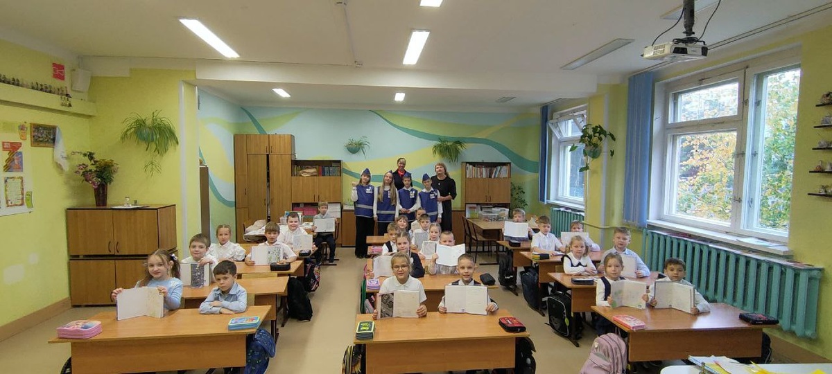Первые «пятерки безопасности» получили первоклассники от сотрудников Госавтоинспекции за безопасный маршрут «Дом-школа-дом