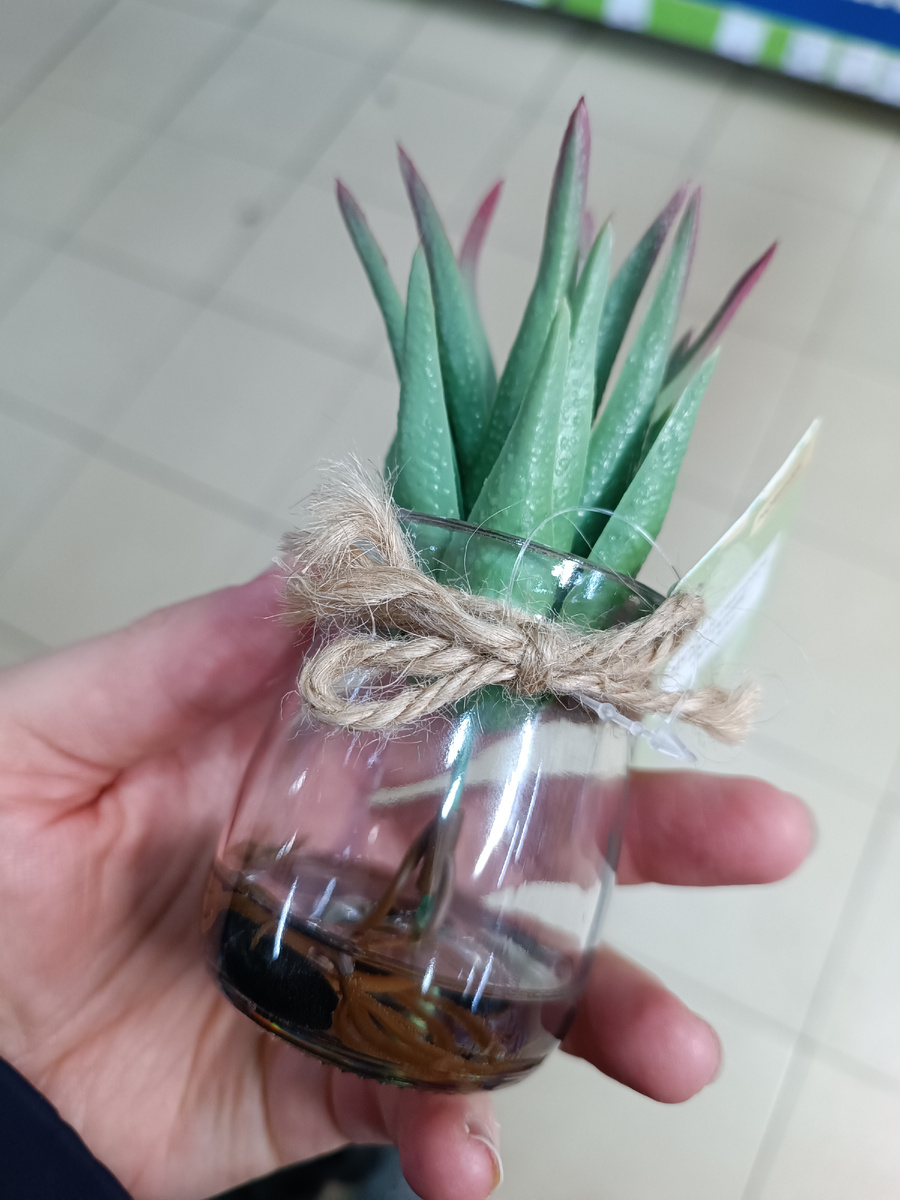 Маленькими стаканчики, похожие на подсвечники, с искусственной зеленью привезли для декорации интерьера.