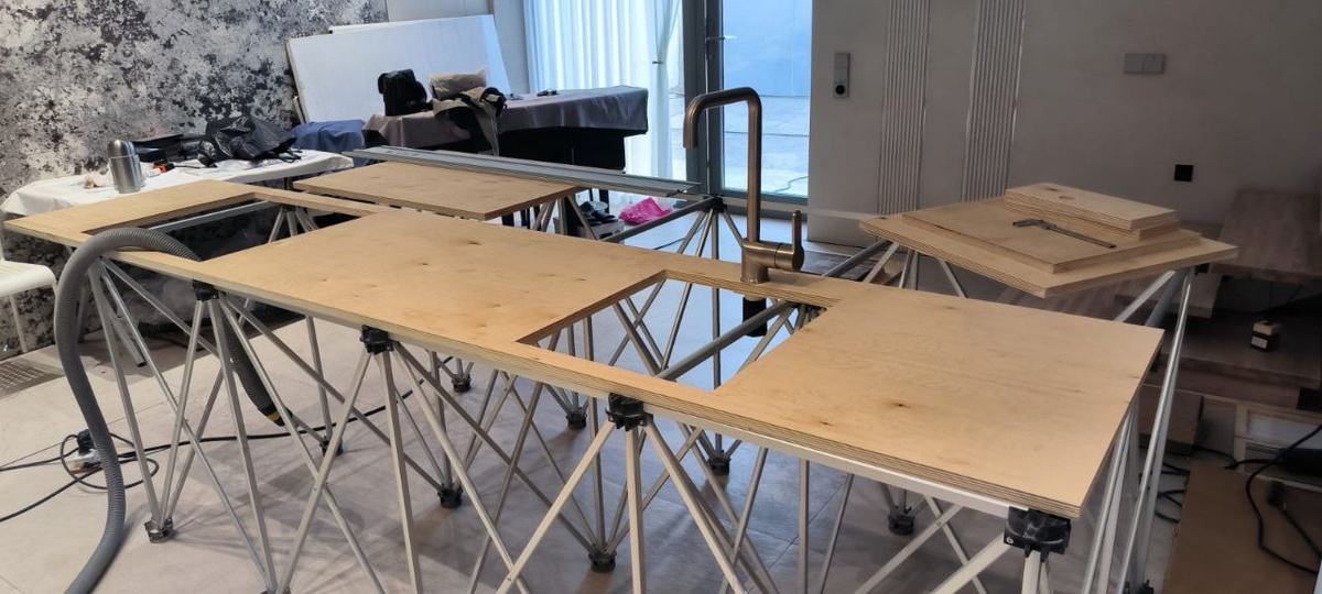 Первым делом Семен приступил к подготовке базы для столешницы. Размера листа хватало для использования фанеры ФСФ 22 мм и он потратил день на разметку, распиловку, фрезеровку и шлифовку...