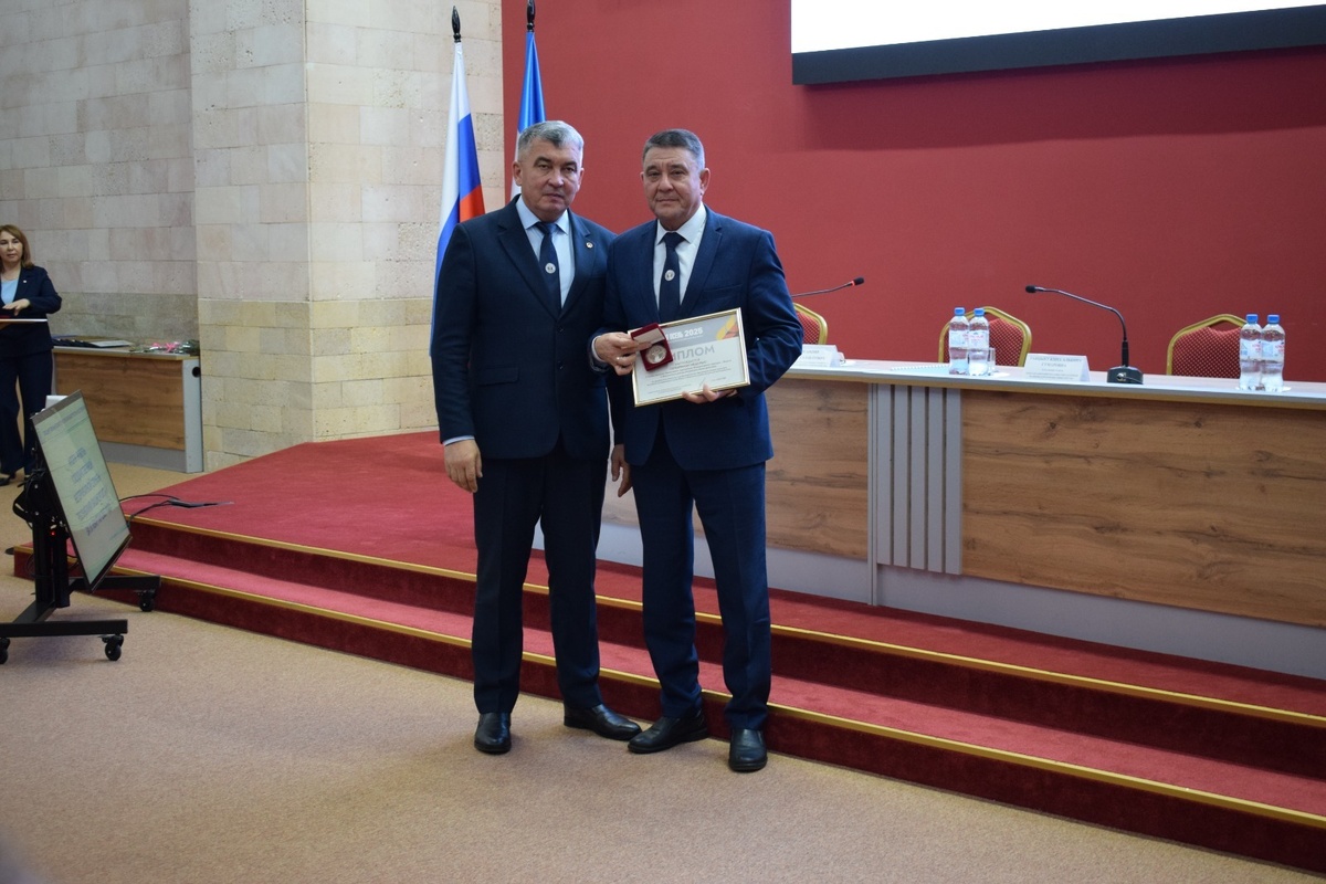 27-я Российская агропромышленная выставка «Золотая осень-2025» прогремела еще в десятых числах октября. Однако ж отзвуки слышны и поныне. К примеру, на минувшей неделе в Уфе подводили итоги работы за девять месяцев года ветеринары Башкирии. Приводились цифры, факты, озвучивались прогнозы, тенденции, напоминали о рисках и потенциальных эпизоотических угрозах. В то же время нашлось время и церемонии награждения. Так, начальнику Янаульской ветстанции Илверу Вильданову председатель Госкомитета РБ по ветеринарии Азат Зиганшин вручил серебряную медаль, привезенную как раз с «Золотой осени-2025». В дипломе же в частности указано, что учреждение награждается «За противоэпизоотические и профилактические мероприятия против бешенства животных на территории города Янаула и Янаульского района Республики Башкортостан».