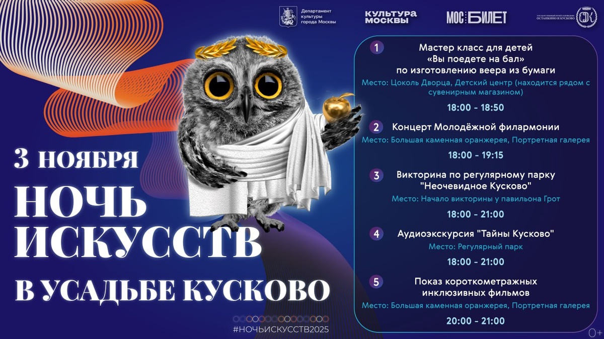 🅰️🅰️🅰️🅰️ 🅰️🅰️🅰️🅰️🅰️🅰️🅰️🅰️ 3 ноября пройдет традиционная ежегодная акция «Ночь искусств». Музеи и театры, выставочные и концертные залы, библиотеки и культурные клубы проведут тематические мероприятия в офлайн- и онлайн-формате. Полная информация на сайте акции - здесь. Мы с радостью публикуем программу "Ночи искусств" в усадьбе Кусково! 🤣Подробное описание мероприятий программы и ссылки на регистрацию — в нашем блоге Важно: если вы не успели оформить бесплатный билет, рекомендуем подойти к началу мероприятия к месту его проведения. При наличии свободных мест вы точно сможете его посетить! Ждем вас! ❤️