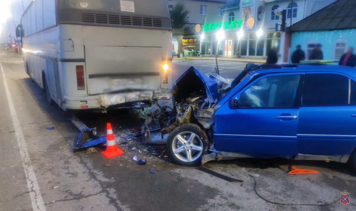 Mercedes врезался в автобус у волгоградского кафе: водитель погиб