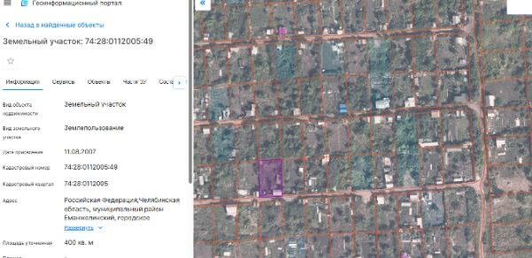 Название: Земельный участок, площадью 400 кв.м., кадастровый номер 74:28:0112005:49, расположенный по адресу: г