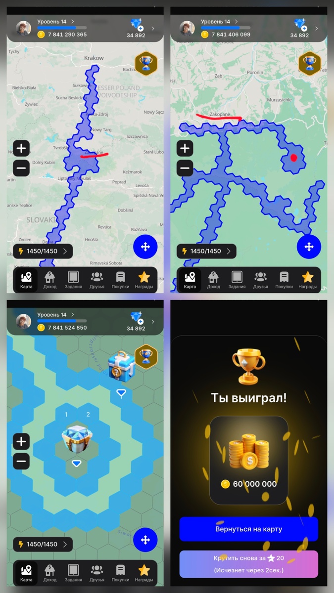 Что за игра? Игра из всем известного ЧекСкана, подробнее про неё можно узнать вот здесь Для меня это не способ заработать, а просто интересная игра с прохождением квестов, географическими открытиями (для меня), немного с эмоциями и азартом. В общем, просто - ИГРА. **************************************************************** Следующая остановка Высокие горы на границе Польши и Словакии, с живописными озёрами и хребтами. Это - Татры (Высокие Татры) — горный массив на границе Польши и Словакии, самая высокая часть Западных Карпат. Европу я уже всю исходила, и все ББ там нашла, но вот горы меня почему-то сразу не привлекли, а может просто надоело топтаться по маленькой Европе. В общем, пришлось вернуться. Как всегда это бывает, ББ оказался прямо рядом с моими дорожками. Вообще, там всё рядом, только успевай поворачиваться)) Полученные миллионы - тоже хорошо. ******************************************************* В игре кроме квестов есть различные задания, которые тоже могут принест
