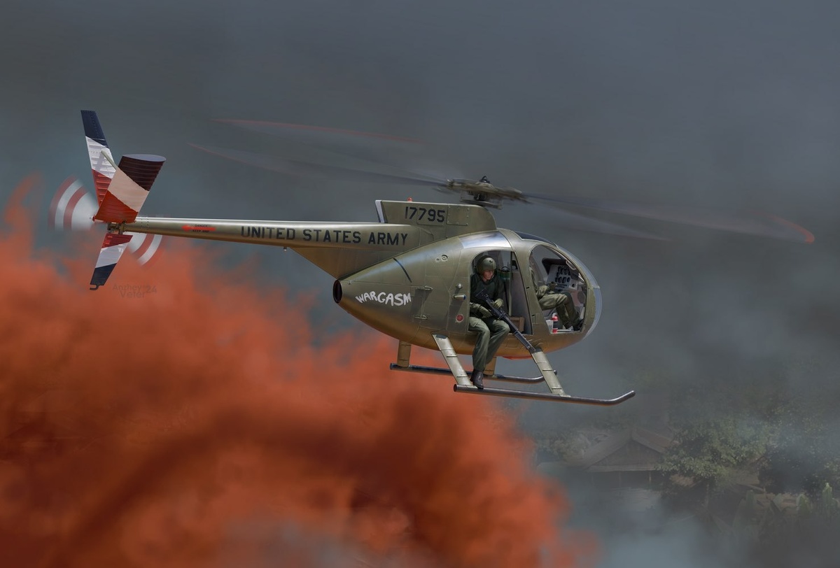 AMP из Комсомольска показала состав набора своей ЛНД-модели вертолета Hughes OH-6A Cayuse в масштабе 1/32