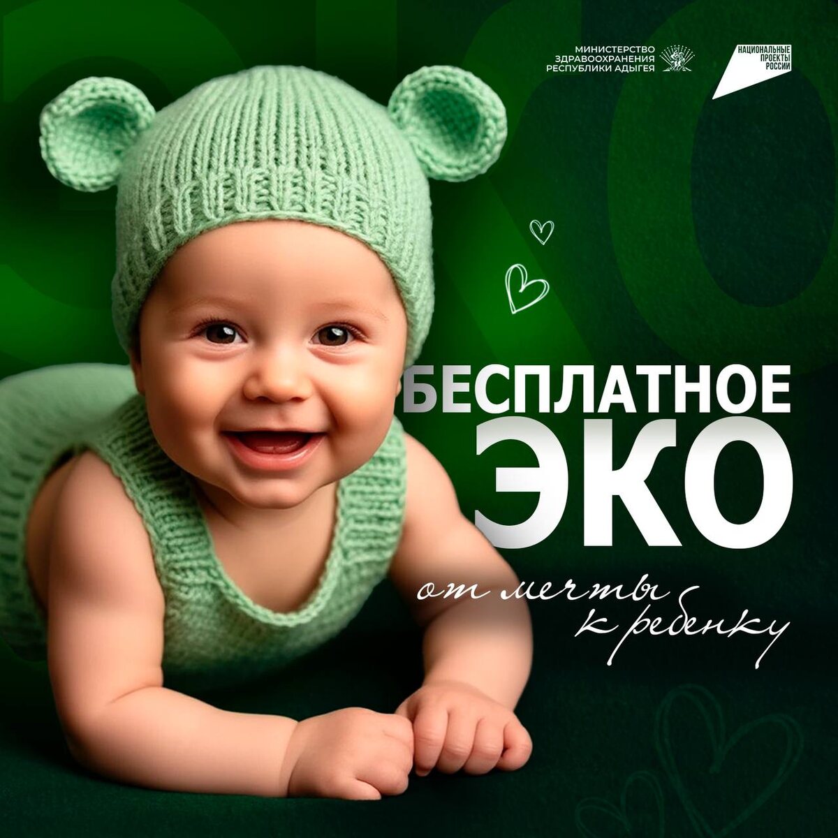 Диагноз «бесплодие» — не приговор В 90% случаев своевременная диагностика и правильно выстроенный лечебный процесс помогают достичь желаемого результата. Процедура ЭКО: 🔘безопасная 🔘эффективная 🔘малотравматичная Чем раньше будет проведено ЭКО, тем вероятнее наступление желанной беременности. Жительницы Адыгеи могут выполнить эту процедуру бесплатно по полису ОМС. Определить состояние репродуктивной системы поможет врач после предварительной консультации и результатов исследований. Подробная информация по телефонам: +7(8772)210-234, доб.2062 +7(988)083-09-67 С начала текущего года благодаря ЭКО на свет появилось 42 малыша. В Адыгее реализуется национальный проект «Семья», созданный по Указу Президента России Владимира Путина.