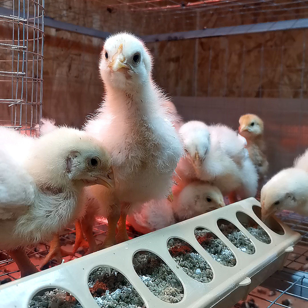 Наши цыплята-бройлеры растут как на дрожжах — кажется, каждые полчаса прибавляют по размеру! У них отменный аппетит: едят всё подряд и постоянно просят добавки, словно решили стать чемпионами мира по поеданию корма. Забавно смотреть, как они стараются обогнать друг друга в гонке за титул самого крупного цыплёнка!
