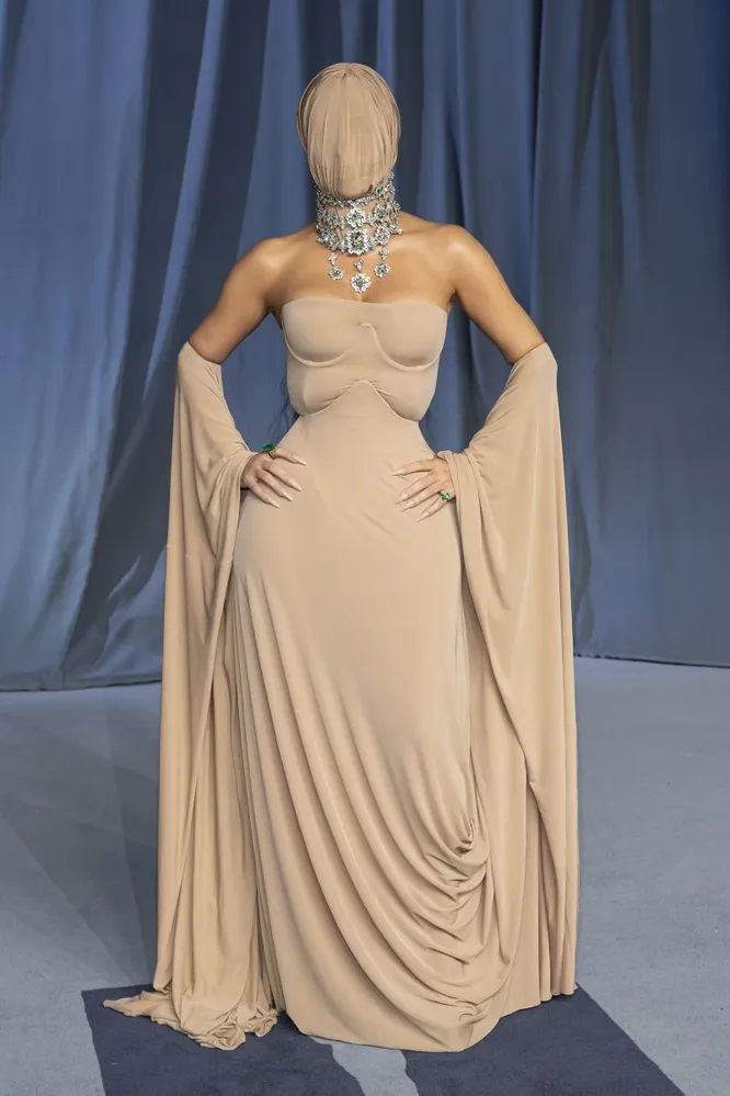 О! Ну разве это не красота? По мне, так изумительный наряд. Лица не видно, грудь спрятана, ребра вырезаны то ли в виде сердечка, то ли в виде рецессии, это то как видит, де руки. Отлично! Ким Кардашьян превзошла себя. Может, наша Ксюша возьмет с нее пример и тоже наденет вуаль? Из человеколюбия. Потом ошейник. Потом намордник. И так далее! И с какой радости к этому прекрасному образу прицепилась наша Ольга Орлова, я вообще не понимаю. Не нравится - не надевай. Но не мешай целителям восхищаться образом бежевой мамы! «Новый образ от матери эпатажа – Ким Кардашьян! Можно не тратить время на макияж, просто закрывать лицо тканью. Девочки, берем на заметку? Вот если посмеяться и пофантазировать, куда бы так нарядиться: в магазин или на родительское собрание? Ваши варианты?» — обратилась к нам Оля, которая, видимо, из родительских собраний просто не вылезает. На совещание я так пойду. Дырки для глаз сделаю - и вперед. Радовать руководство! Вот, скажут оно, некоторые делом заняты. А вам бы