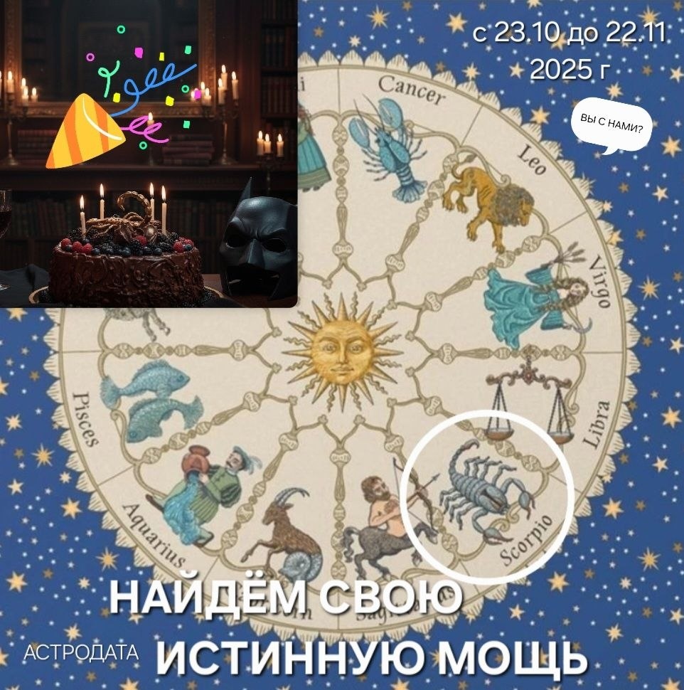 🤗 ☀️♏️ ПРИВЕТСТВУЕМ В С Е Х! Наш астрологический календарь сообщает: 🗓️ 📢 23 октября наше главное светило Солнце перешло в знак Скорпиона! Это значит, что ближайший месяц пройдёт под знаком глубины, трансформации и интенсивных эмоций. Все мы почувствуем, как энергия меняется с воздушной гармонии Весов на водную страстность Скорпиона. Это время для того, чтобы погрузиться в суть вещей, завершить старые циклы и обрести внутреннюю силу. ТЕМА ☀️ -> ♏: "НАЙДЁМ СВОЮ ИСТИННУЮ МОЩЬ И ТРАНСФОРМИРУЕМ СВОЮ ЖИЗНЬ". Читайте далее в комментариях... 👇 #астрология #солнце_в_скорпионе #практическая_астрология #astrodata