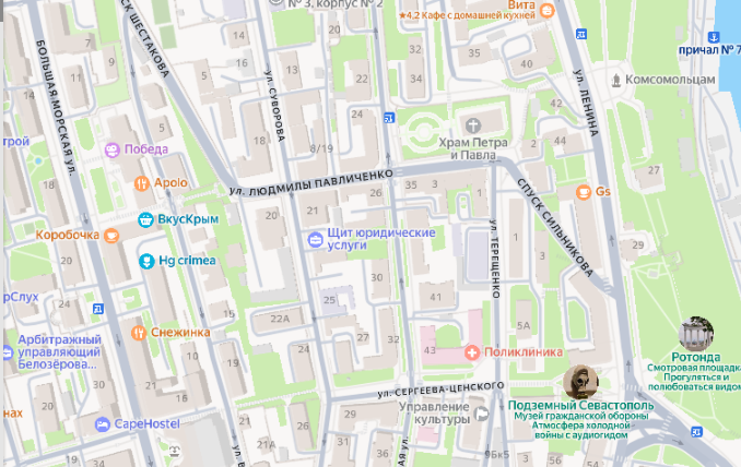 Можно дойти с Большой Морской, поднявшись по Таврической лестнице. Для этого нужно выйти на остановке «Кинотеатр Победа».