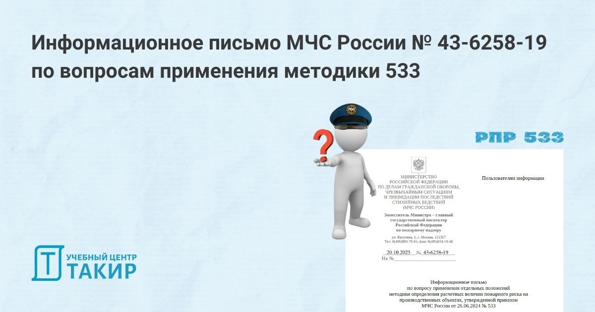 Информационное письмо МЧС России № 43-6258-19 по вопросам применения методики 533