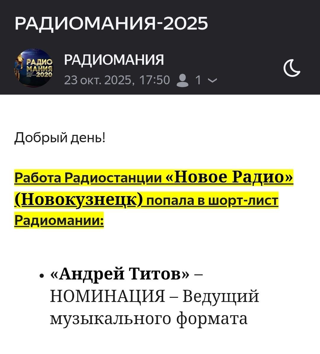 А меж тем есть и такие офигенные новости🔥! Просто факт: 4й год подряд штурмуем пьедестал, но я всегда волнуюсь как в первый раз! 🤞🤞🤞 А пока не понимаю, какой статус больше подходит - то ли я уже стал своеобразным радийным ДиКаприо, то ли я уже стал своеобразным радийным мемом, что каждый год в финале самой престижной радиопремии