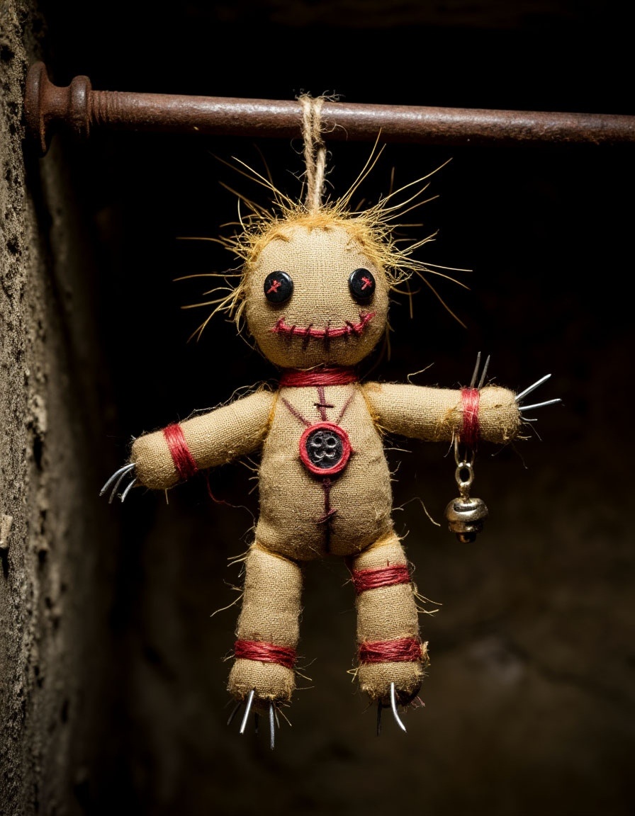 Как только верёвка готова, в полночь, в полнолуние, из верёвки нужно сделать петлю и надеть на голову кукле. Теперь куклу нужно повесить, как висельника, в укромном месте на гвоздь, и 9 раз произнести заклинание: