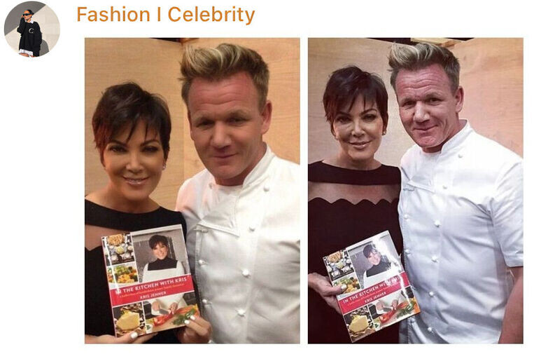 Если вы думаете, что выглядеть до обидного по-разному у себя в соцсетях и у подружки могут лишь простые смертные вроде нас с вами, то спешим успокоить. Звезды тоже знают об этом «эффекте» не понаслышке. Смотрите сами. Когда Крис Дженнер выпустила кулинарную книгу, она пригласила своего друга Гордона Рамзи, чтобы тот помог ей презентовать шедевр. Конечно, совместное фото «мамаджер» и знаменитого шеф-повара немедленно появилось в соцсетях обоих звезд. Только Крис щедро отретушировала снимок, не забыв «разгладить» и старину Гордона, ну а тот наивно разместил кадр без ретуши. Поклонники не устают засыпать Сальму Хайек комплиментами по поводу ее роскошного внешнего вида. Тем более, если верить звезде, она не знает, что такое бьюти-«тюнинг» и не пользуется антиэйдж-средствами. Впрочем, судя по этим фото, сделанным в один день и опубликованным Сальмой и «дружественным» сайтом, фейстюн актриса уважает и неплохо в нем разбирается! 76-летняя Вера Вонг получает комплименты вполне заслуженно, ведь