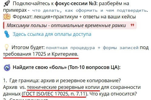 И уж тем более не понятна отсылка к п. 7.11 Управление данными и информацией, а точнее должно быть к пунктам 7.11.3 b) d. В целом эти пункты должны выполняться в том числе и за счет резервного копирования записей, но по дальнейшему списку вопросов программы обучения понимания этого факта нет.