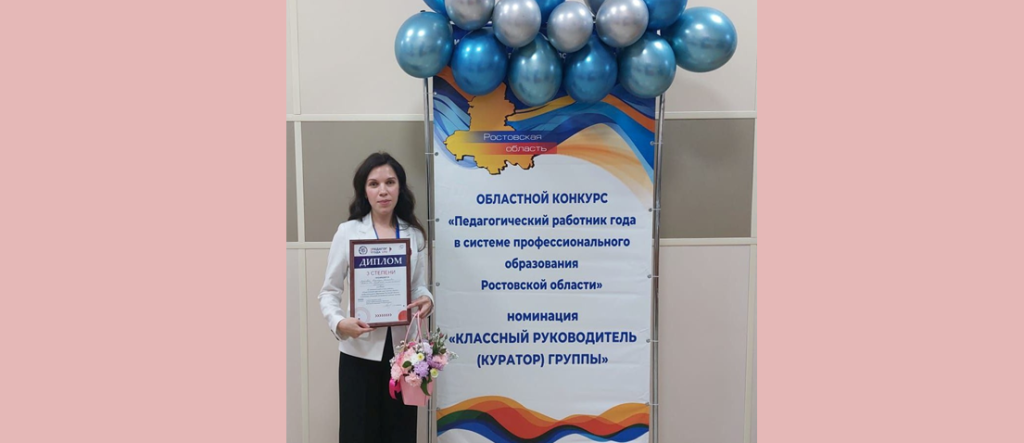23 октября на базе Шахтинского педагогического колледжа прошел финал областного конкурса «Педагогический работник года в системе профессионального образования Ростовской области – 2025» в номинации «Классный руководитель (куратор) группы». Каждый конкурсант прошёл 3 сложных этапа, в ходе которых представил инновационные методики воспитания, провёл мастер-классы и представил педагогический мини-проект. Надежда Евгеньевна продемонстрировала высокий уровень педагогического мастерства и завоевала почетное 3 место.