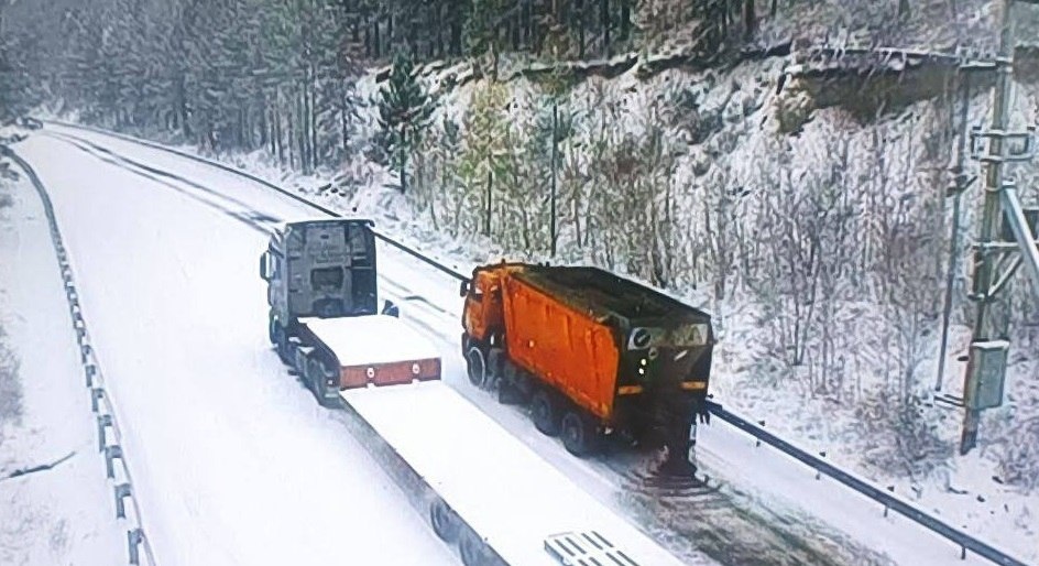 В Бурятии из-за снегопада на перевале Мандрик затруднено движение для грузовиков