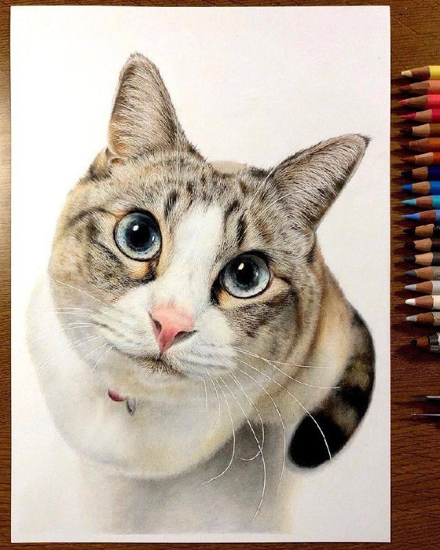 КОТотема + необычности🪄 Невероятно реалистичные кошки в картинах художника Haruki Kudo Для создания этих потрясающих рисунков, японский художник Haruki Kudo использует самые обыкновенные цветные карандаши. После долгих экспериментов в текстурами, техникой рисования и оттенками, художник нашел идеальных моделей для своих картин. Ими стали кошки и коты, самых разных пород и окраса. Работы поражают реалистичностью. отличных выходных ! 🧡