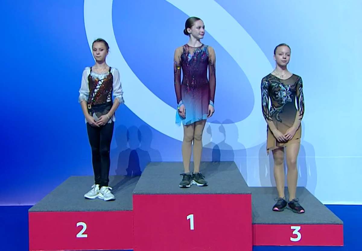 Майя Сарафанова. Тренер Екатерина Моисеева. Четверной лутц не покорился фигуристке. Увы. Две галки и касание рукой льда. Остальной прыжковый контент фигуристка исполнила играючи. Неясные рёбра на лутцах. Я не заметил.