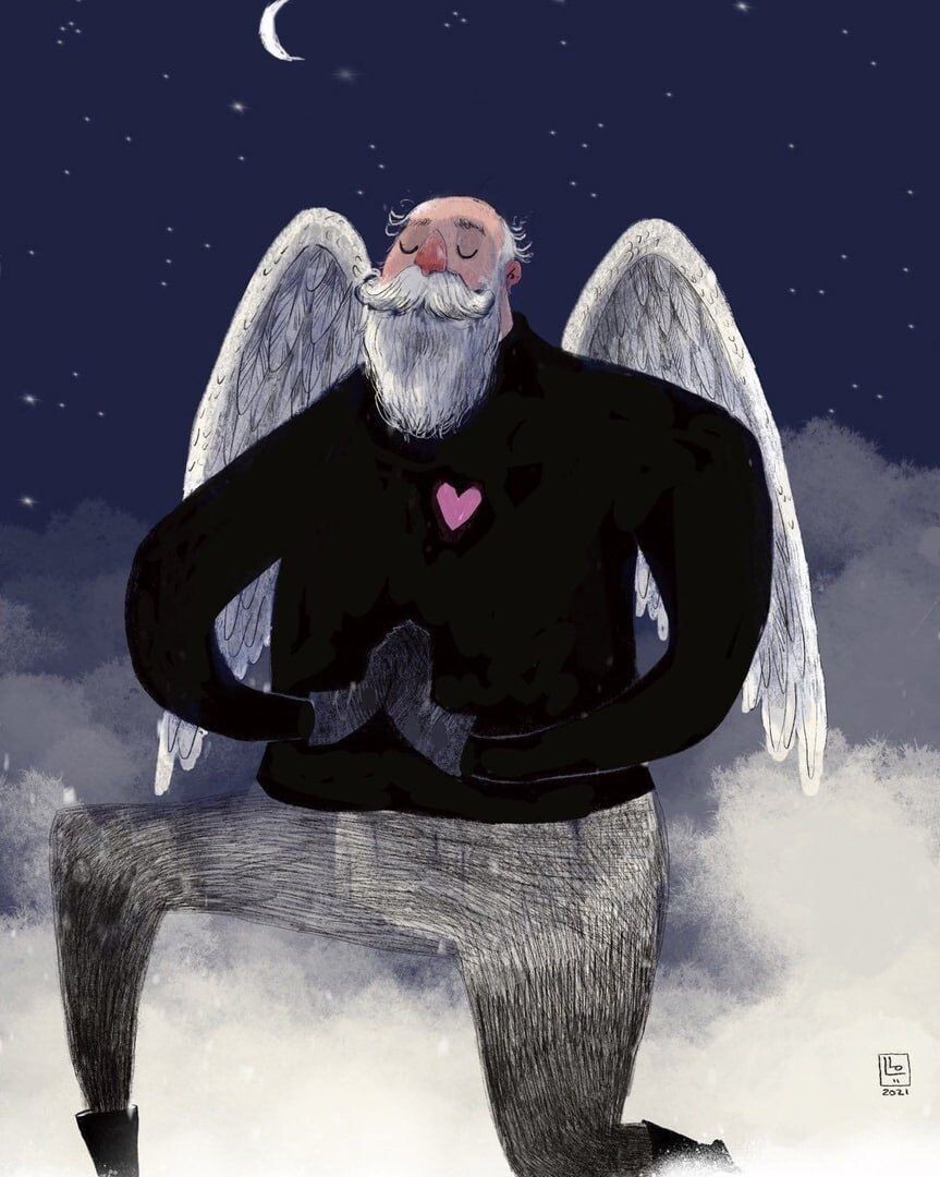 ДЕДУШКА С КРЫЛЬЯМИ. Машинная вышивка.