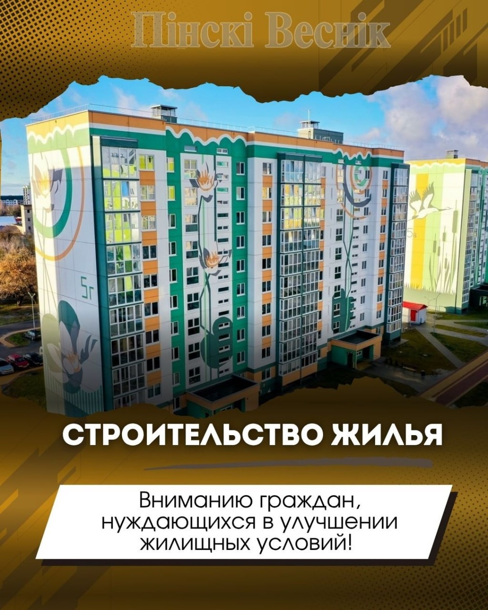 💙💙💙 🔄Вниманию граждан, нуждающихся в улучшении жилищных условий! ➡️Пинский горисполком приглашает граждан, состоящих на учете нуждающихся в улучшении жилищных условий по месту жительства в Пинском горисполкоме и имеющих право на государственную поддержку при строительстве жилья к участию в долевом строительстве с использованием льготного кредита в микрорайонах южнее микрорайона «Жемчужный» и «Радужный» в г. Пинске. ⏩Желающие построить в данных микрорайонах квартиру с использованием льготного кредита могут обратиться в каб. 10 (ул. Днепровской Флотилии, 21, отдел ЖКХ; пн. – пт. с 8:00 до 13:00). ⏬При себе иметь паспорт. Справки по тел. 369937, 369909 #Строительство #Жилье 📍📍@Пинский Вестник 📱ЮТУБ 📱САЙТ 📱ИНСТ 📱ВК 📱ОК 📱ФЕ 📱TikTok 📱Прислать новость