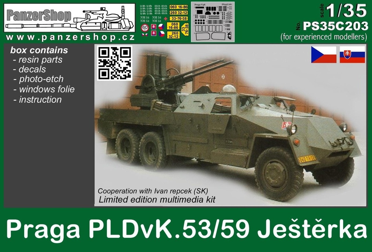 Чешская Panzershop выпустила модель чехословацкой ЗСУ Praga PLDvK.53/59 в масштабе 1/35 из полиуретановой смолы: Praga PLDvK.53/59 Jesterka (каталожный номер PS35С203)