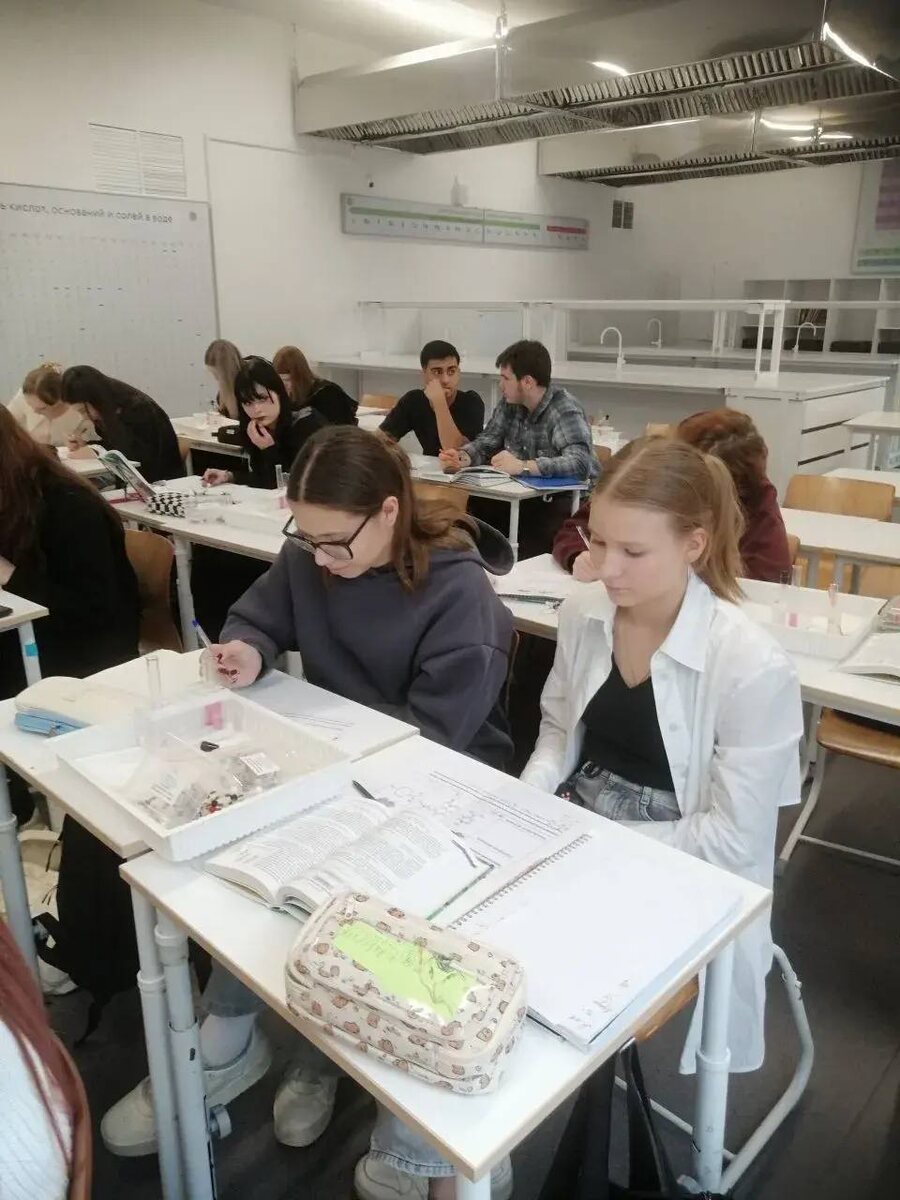 🧪 Ученики 10 медицинского класса на открытом уроке в «Бунинских лугах» провели занятие на тему «Алкадиены», на котором ребята разбирались в сложных строениях органических веществ.