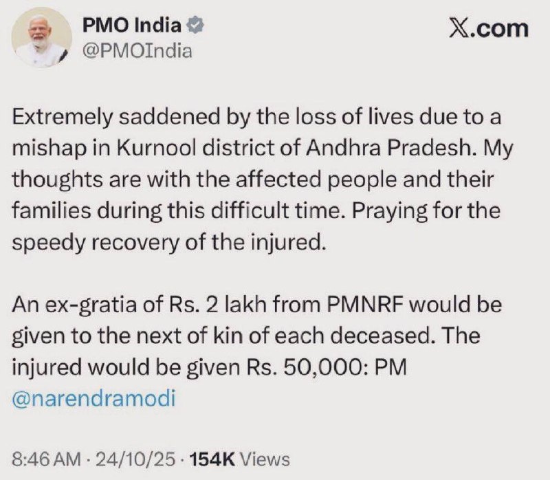 ⚡️ PM Modi 'Extremely SADDENED' and praying for the victims of the bus CRASH In Andhra Pradesh