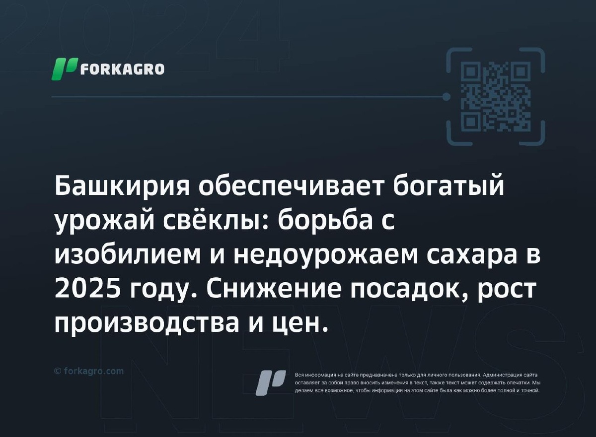 В 2024 году в Башкирии урожай свёклы был рекордным, но из-за недостатка перерабатывающих мощностей часть урожая не была обработана из-за тёплой зимы. В 2025 году урожай сократили, но результативность выросла, и производство сахара стабильно. Цены на сахар по стране ожидаются выше на 25–30 %, однако в Башкирии ситуация лучше.