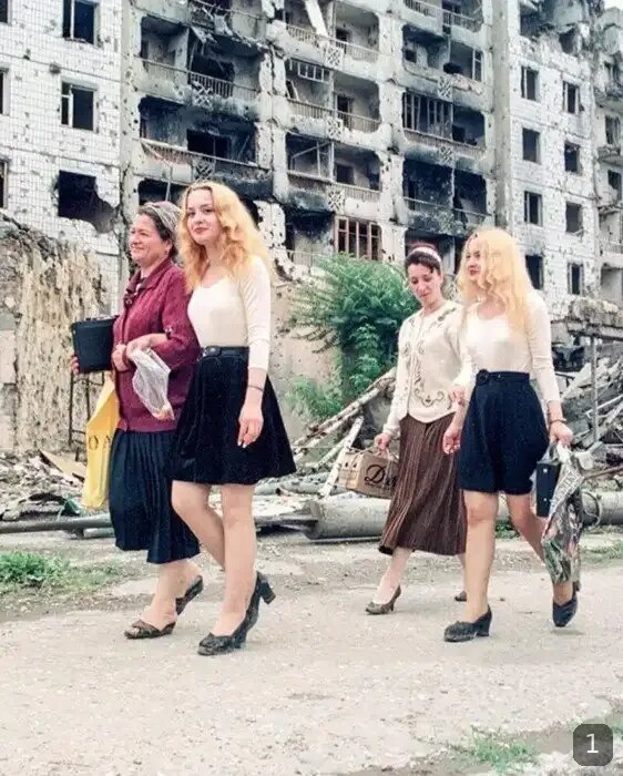 Эти снимки — как откровения, сделанные между двух эпох. На них нет фильтров, но есть правда: молодость, усталость, надежда, и то странное чувство, когда жизнь вроде бы только начинается, а вокруг — сплошные руины. Девчонки с выпрямленной спиной и взглядом в объектив, будто знают: их время будет коротким, но запомнится. В каждом кадре — смесь дерзости и нежности. Они могли смеяться, даже стоя среди пыли и разрухи. Смотрим на них и понимаем: 90-е — это не просто мода и безденежье. Это эпоха, где даже фотография дышала свободой и тревогой одновременно. Дочитайте до конца — вы поймёте, почему эти кадры всё ещё цепляют сильнее, чем любые постановочные истории. Пыль щекочет ноги, каблуки застревают в выбоинах, но Линда с Дианой будто бы гуляют по набережной в Сочи, а не среди южных развалин. Вот это нерв — и улыбки упрямые, как будто война осталась за углом. Волосы пахнут солнцем, шаг бодрится от самой жизни. Тут всегда стоял слабый запах мела, чуть слышно гудел свет. Девчонки будто случайн