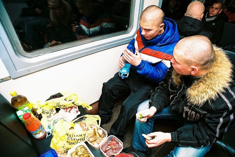 В советские времена на вокзалах в ларьках можно было купить по доступной даже для студента набор продуктов из серии "В дорогу" (кажется, он назывался иначе, но я не помню, как именно). Там была круглая булочка, кусок колбасы, сырок "Дружба", яйцо и вроде что-то ещё. Возвращаясь с занятий, порой довольно поздно, я, разумеется, был всегда голодный, и брал такой набор, садясь в электричку. Планировалось, что приеду в общагу и тогда всё это съем. Но нередко бывало иначе... Пока состав просто стоит на платформе, его двери могут быть открыты, но света в нём нет. На табло (которое тогда было механическим, а не электрическим) пока не прописано, куда именно отправляется электричка, поэтому основная масса пассажиров опасается туда садиться. Но я-то знаю, что это мой поезд. Я сажусь в сумрачный вагон, в котором пока никого, пользуясь темнотой, а потому, не стесняясь никого, раскладываю на скамейке содержимое набора, очищаю яйцо... И только начаю свою скромную трапезу, как внезапно включается ярк