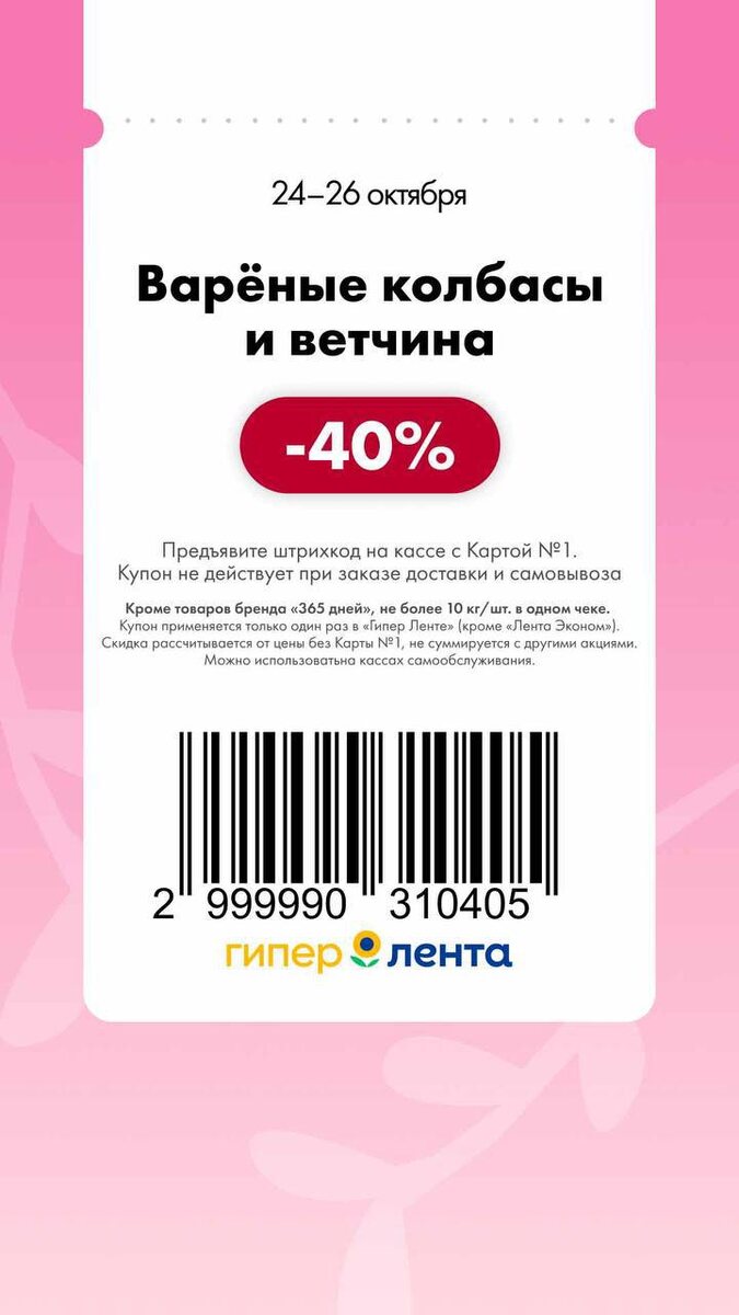 Новые купоны в Гипер Ленту, действуют с 24 по 26 октября