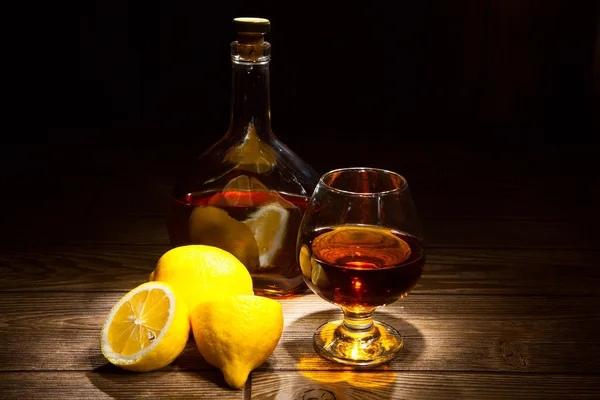 На самом деле кислота из лимона реагирует с дубильными веществами и эфирными соединениями в коньяке. В результате:
