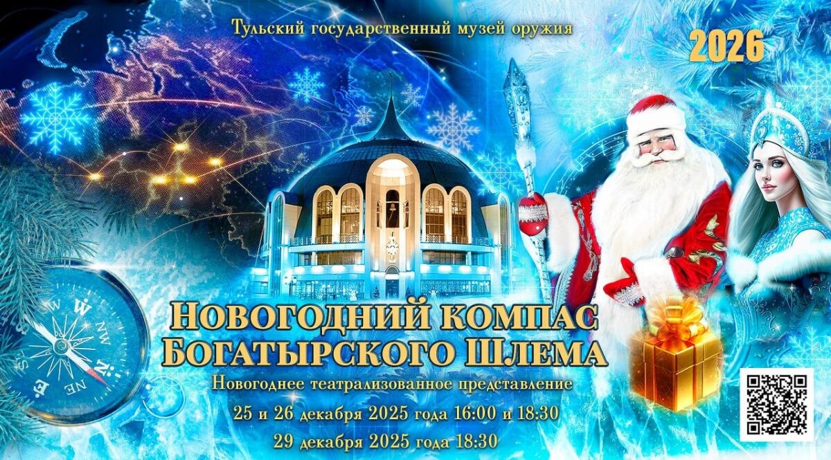 В волшебные дни конца декабря 2025 года в Тульском государственном музее оружия стартует детское театрализованное представление «Новогодний компас Богатырского Шлема»! Знаете ли вы, что Дед Мороз – самый быстрый волшебник на свете? Он успевает за одну ночь побывать в разных уголках нашей необъятной страны - от востока до запада. А не сбиться с маршрута ему помогает новогодний компас. Но что будет, если главным волшебником Нового года захочет стать таинственный чародей Ферро-Маг и заколдует компас Деда Мороза? Не страшно! Разрушить его ферро-магнетизм и злые чары смогут сила и отвага Стальных стражей музея оружия, мудрость и искусство хранителей древних секретов – тульских мастеров, а также крепкая дружба и горячие сердца смелых помощников - мальчишек и девчонок – участников сказочного путешествия! Под куполом Богатырского шлема: - Потрясающая сказка оживет в театральных образах и пластике. - Музыка зимы закружит в вальсе чудес. - Искры магии ослепят и восхитят. - Чудесный розарий музея