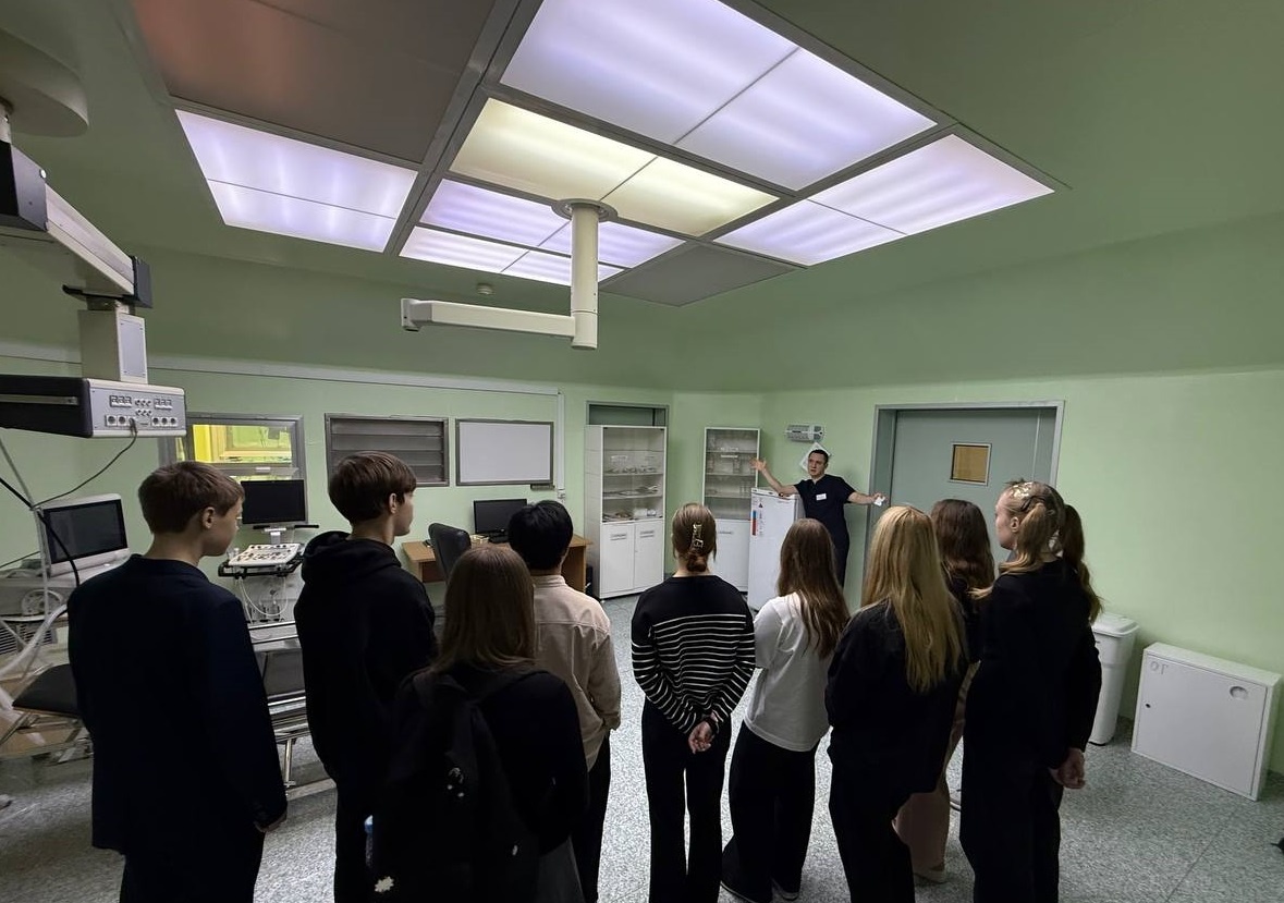 Как проводят сложнейшие операции, что такое трансплантация, как выглядит противошоковый зал и почему ОКБ № 1 называют передовой больницей - уникальную возможность получить ответы на эти вопросы и заглянуть на медицину изнутри получили ученики школы № 40. Экскурсию для старшеклассников провели заместитель главного врача по медицинской части хирургического стационара Никита Юрьевич Стогний и руководитель Центра трансплантации органов и тканей человека Сергей Борисович Семченко. Ребятам рассказали, что Первая областная – это больница 3-го уровня, где проводят самое сложное лечение, а уникальность её в том, что в ней выполняют полный спектр услуг: от приёма в поликлинике до оперативного вмешательства. Особое внимание уделили кардиохирургии. Никита Юрьевич поделился личным опытом: «В моих руках побывало более двух тысяч сердец. В этой хирургии больше всего ответственности, адреналина. Когда заходишь в операционную, то понимаешь, что от тебя зависит результат. Приходя домой с работы кажды