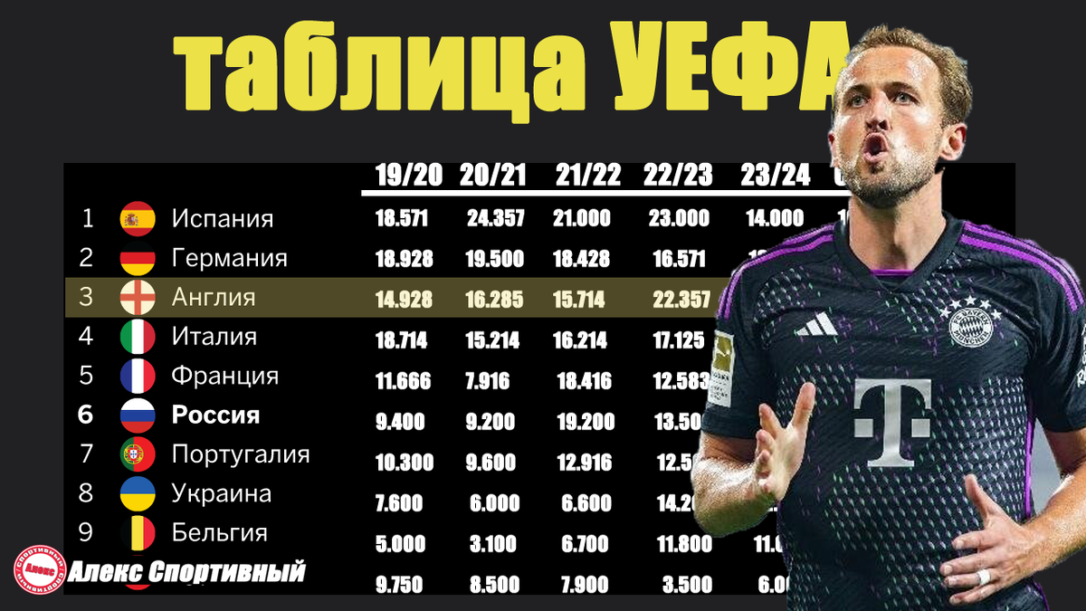 Привет всем любителям европейского футбола. Я проделал большую работу и сегодня расскажу Вам об обновлённом рейтинге УЕФА, подробно разберу каждую страну, каждый её результат и сколько она заработала за эту неделю. Сначала кратко напомню, что сумма очков за 5 сезонов формирует общий рейтинг страны, после чего определяется её место в таблице коэффициентов УЕФА. Переходим к самому сладкому – вишенке на торте. Кстати, может сегодня у кого-то день рождения, напишите, а я могу за отдельную плату записать Вам поздравление. Друзья, кликайте вывести ролик в ТОП, если смотрите нас на Рутубе. А если информация была полезной и интересной - поддержите наш канал по ссылкам внизу. Услышимся на «спортивном».