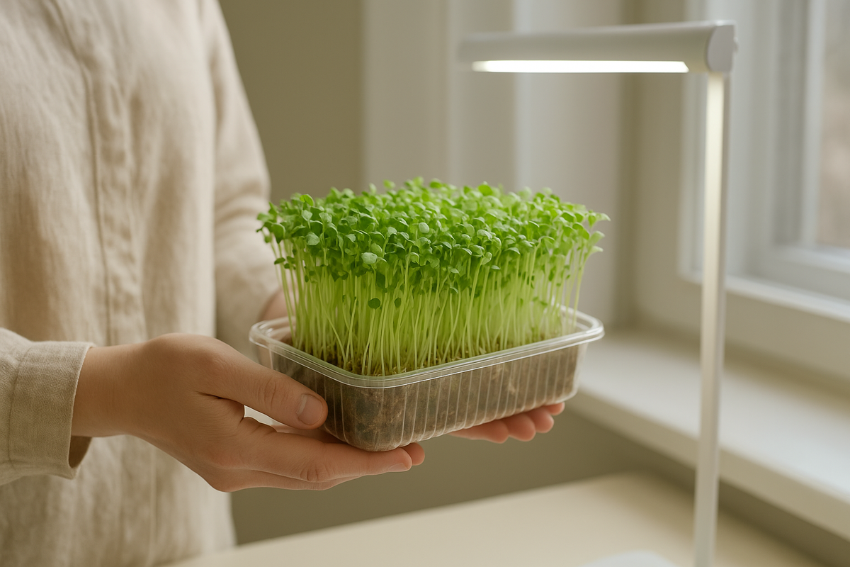 Через неделю уже срезала первую партию. На удивление, зелень выглядела так аккуратно, что соседи и друзья сразу попросили «продать чуть-чуть». Тогда я поняла — спрос есть, даже без рекламы. Цикл всего 7–10 дней.