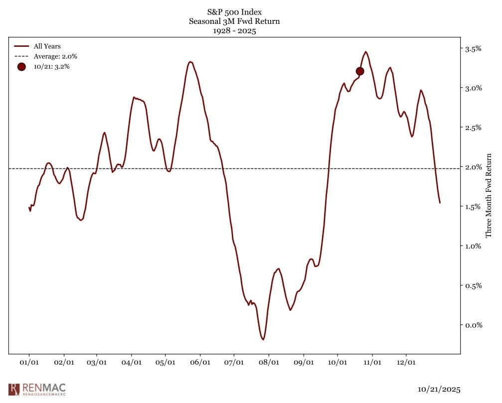 По исторической сезонности именно конец октября считается лучшей точкой для входа в S&P 500 на ближайшие три месяца