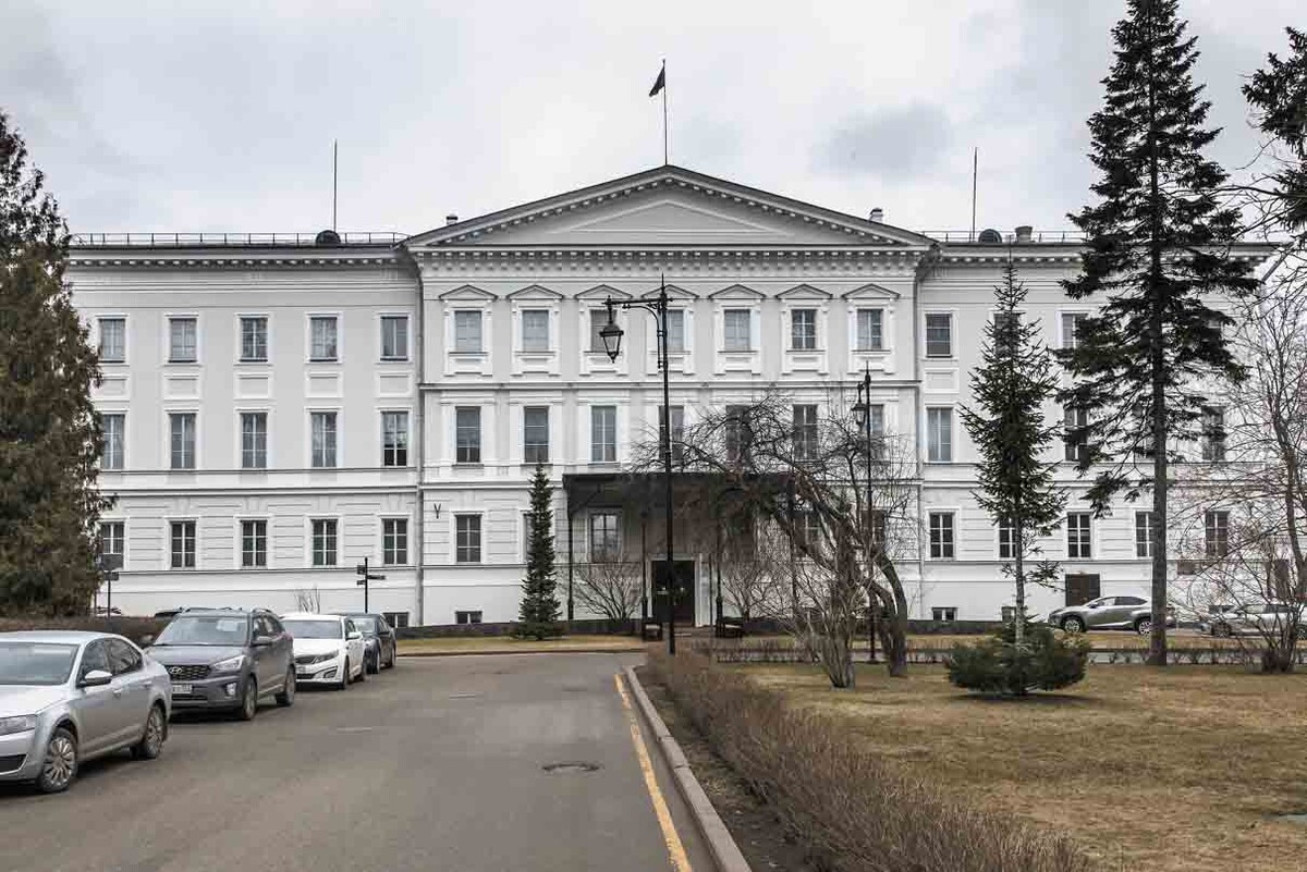 Нижегородцы называют это здание «кремлевский дворец». И действительно, здание в стиле классицизма изначально строилось как главный дворец города. Своим рождением он обязан Николаю I, бывавшему в Нижнем Новгороде несколько раз. Первый визит монарха, которого сопровождали свита и граф Александр Бенкендорф (см.: «Русский мир.ru» №12 за 2015 год, статья «Записки добродушного жандарма»), состоялся в октябре 1834 года в рамках путешествия самодержца по губерниям «для блага подданных своих».