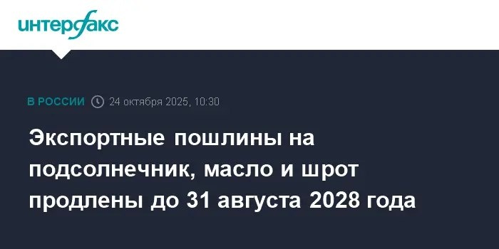 Правительство России продлило экспортные пошлины на подсолнечник Ого, наши надолго застолбили пошлины на подсолнечник и масло – аж до 2028 года! Всё ради нашего рынка, чтобы свои переработчики не голодали, а мы с вами не сидели без масла. Так что exporters, готовьтесь, будете платить, чтобы у нас всё было! 🗞 Читайте на сайте: lavi.su 📷 Изображение: www.interfax.ru 📣 Подпишитесь: lavi_news