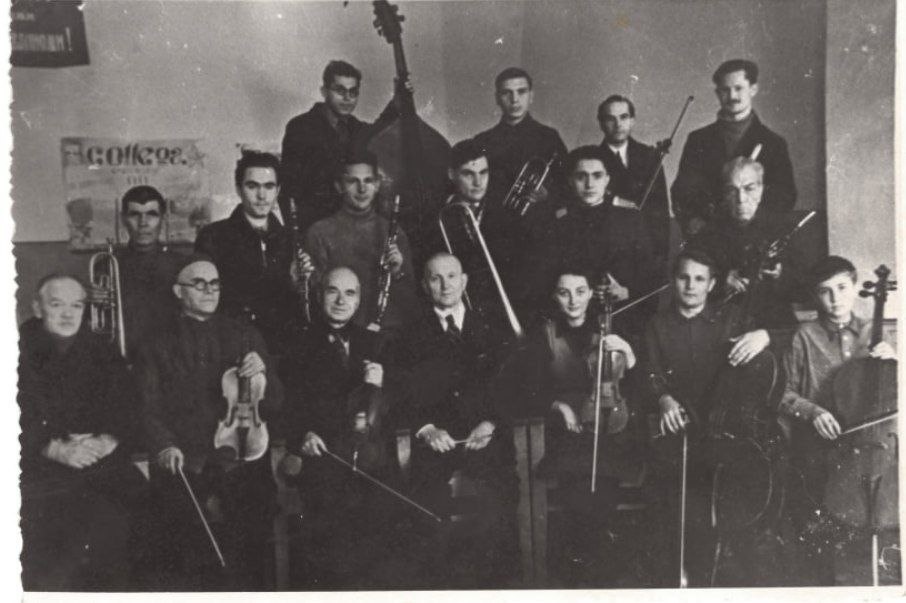 Предыдущие статьи об истории Кубанского медуниверситета вы можете найти по ссылке Отгрохотали поля Великой Отечественной, но грохот не смолк — теперь это грохот стройки и возрождения. Жизнь снова набирала краски: после тяжелых потрясений люди спешили жить, любить, созидать, радоваться. Так было и в стенах нашего вуза! Несмотря на тяжёлое послевоенное десятилетие, студенты и сотрудники нашей Alma Mater брали от жизни максимум. Если с учебой все более-менее понятно, то про творческую жизнь того времени мало кто знает. А ведь кипела она не хуже, чем лабораторная работа! Например, в КМИ существовал настоящий оркестр, в котором играли и студенты, и преподаватели. Репетировали вместе, выступали с концертами. Дирижировал профессор Борис Цинкаловский, а его сыновья Ростислав и Игорь играли на виолончели и кларнете. Остальных участников, к сожалению, пока не удалось опознать — будем рады вашей помощи! Кроме оркестра, в вузе активно работали народный танцевальный ансамбль и театральный кружок. В
