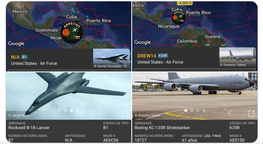 Пара сверхзвуковых стратегических бомбардировщиков В-1 ВВС США пролетела вблизи территории Венесуэлы и отдалённых островов, принадлежащих этой стране в Карибском море. На прошлой неделе в том же районе были замечены три бомбардировщика В-52. Пентагон подтвердил эти вылеты и то, что самолёты сопровождали истребители F-35B Корпуса морской пехоты США. По данным открытых онлайн-трекеров, которые могут быть не точными, сегодня утром по местному времени, с базы ВВС в Техасе вылетели два бомбардировщика B-1. Примерно через 90 минут с базы во Флориде вылетели самолёты-заправщики КС-135. Доступные данные позволяют предположить что бомбардировщики могли приблизиться к побережью Венесуэлы примерно на 80 км и гораздо ближе подойти к островам Лос-Тестигос. В то же время над Карибским морем активно действовали и другие военные самолёты США, в том числе разведывательные RC-135 и связные Е-11А. В настоящее время официальные комментарии от Вашингтона и Каракаса ограничены. Ситуация остается напряж