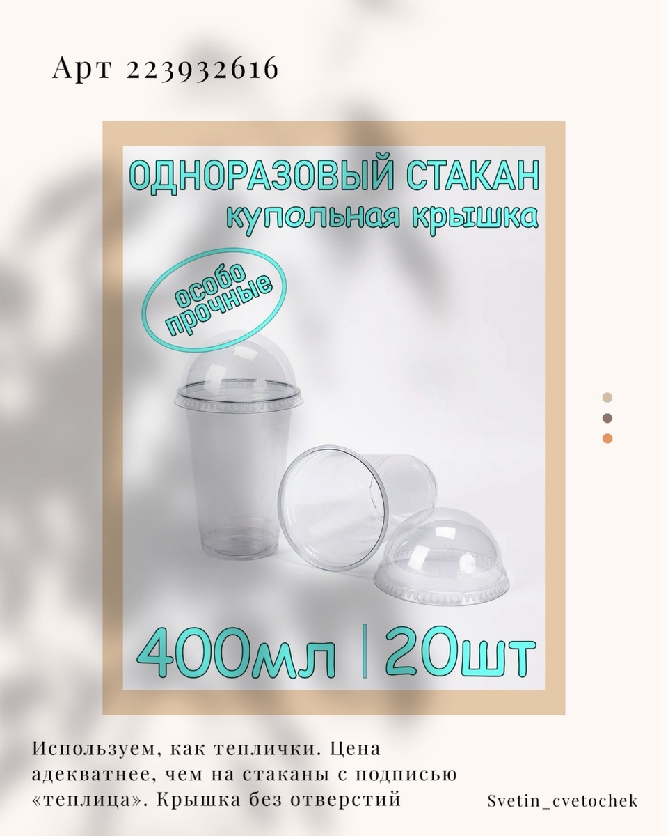 Сейчас с вами поделюсь своими покупками, а точнее частью их, чтобы проверить, а понравится ли вам вообще такой выпуск и стоит ли делать продолжение. Если понравится, то я сделаю еще несколько выпусков и бонусный - растения с ВБ. Так что не забывайте ставить лайки, друзья и подписываться на канал - зеленые истории. Здесь я рассказываю о растениях и строительстве моего маленького питомника на Урале с нуля и о строительстве своей первой теплой теплицы. Пожалуй, начнем. Фото я взяла из своего аккаунта в другой социальной сети, где я позиционирую себя как начинающий питомниковод Светин Цветочек. Я строю свою первую теплую теплицу и маленький питомник на Урале. В январе запущу продажи вегетативных растений. Если хотите поддержать мое маленькое дело - подписывайтесь на канал и на группу вк: https://vk.com/svetincvetochek Я использую такие стаканы в качестве мини-тепличек, когда мне необходимо что-то укоренить или прорастить клубни, например, алоказий. Крышка без дырки и это самое главное. Пот