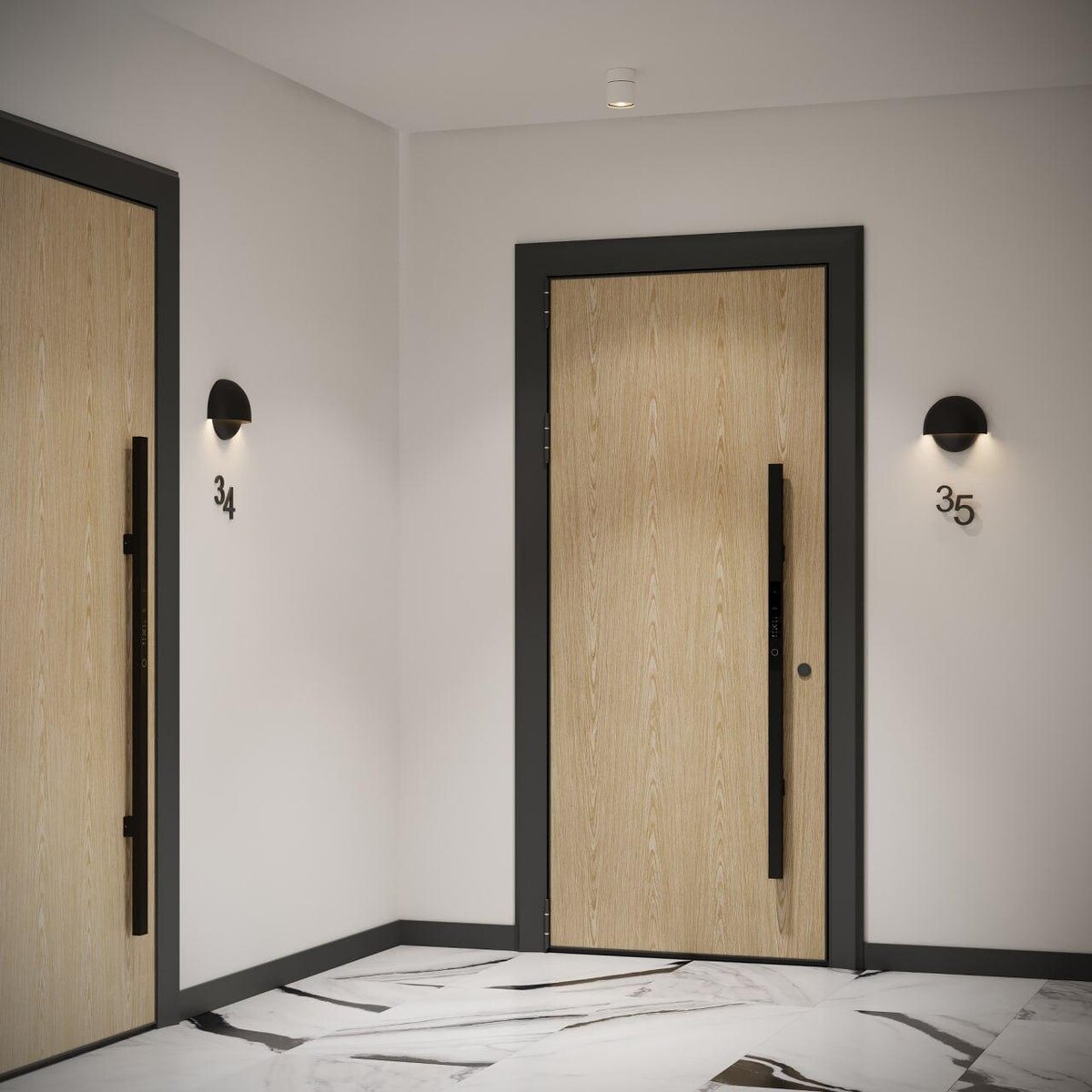1️⃣ Алюминиевые входные двери с отделкой из натурального шпона — это сочетание прочности, энергоэффективности и безупречного стиля