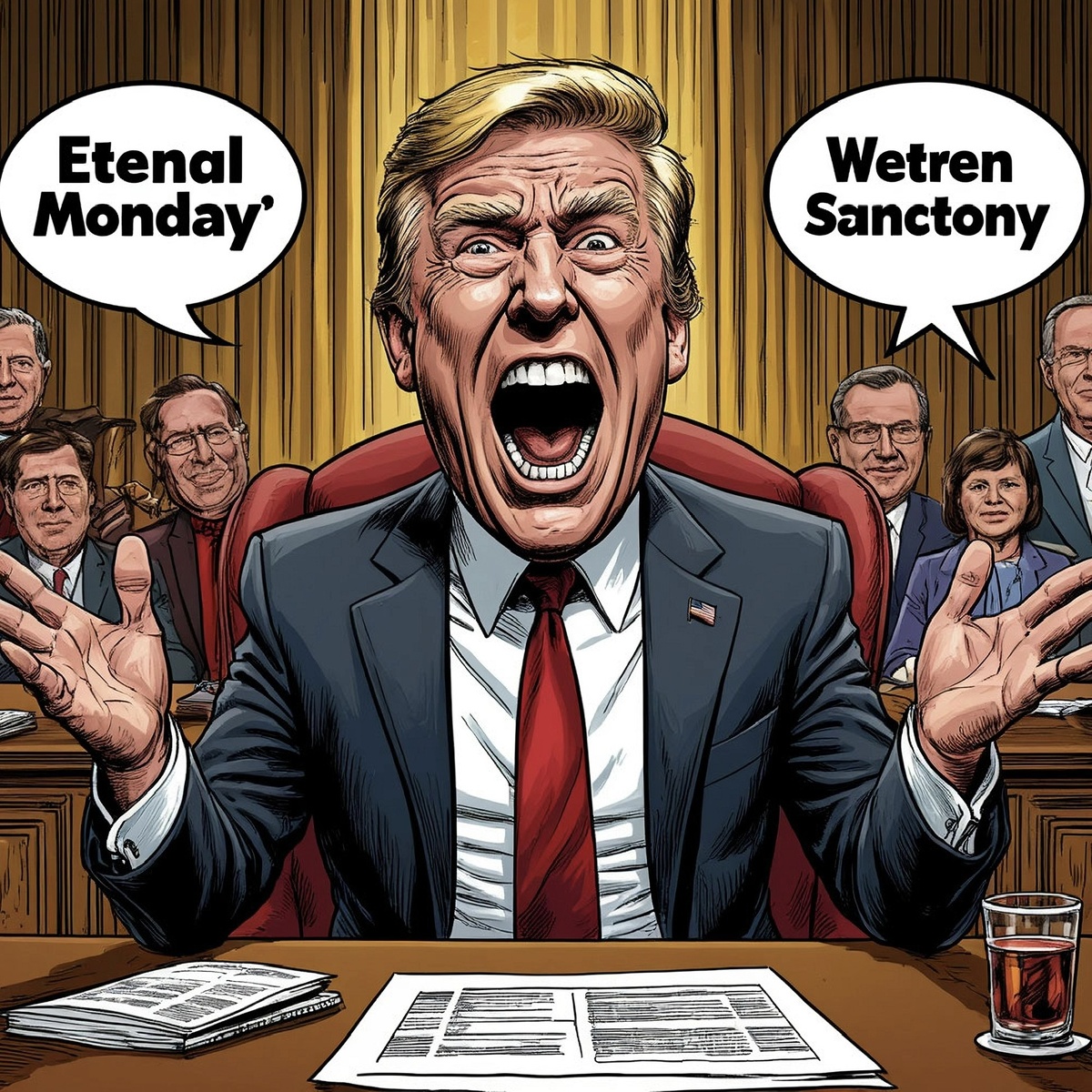 Против России вводят не просто санкции, а ОЧЕНЬ ПРОТИВНЫЕ Внимание! Редакция «Утреннего Кофе с Круассаном в форме Кошечки» или сокращённо «УККвФК» только что получила сливы из «очень надёжных источников». Готовьтесь, новости бьют ниже пояса. И по вкусовым рецепторам. ДАТА: 24 октября 2525г МЕСТО: Весь цветной цивилизованный и не очень мир. ЧТО ПРОИЗОШЛО: Как стало известно нашим корреспондентам, которые случайно подслушали разговор в очереди за бананами, против России готовят пакет санкций такой изощрённости, что в Брюсселе и Вашингтоне до сих пор злобно потирают руки. Если раньше санкции были про деньги, технологии и «нельзя туда-нельзя сюда», то новые ударят по самому святому. По душевному комфорту. 1. Санкция «Вечный понедельник». С сегодняшнего дня все календари на территории страны будут показывать исключительно понедельник. Выходные отменяются как класс. Утро начинается не с кофе, а с осознания, что впереди пять рабочих дней. Даже в субботу. 2. Санкция против борща и пельмене
