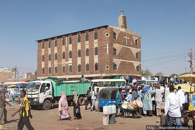 Посреди автостанции Бахри находилось неказистое здание в которое пожелалось зайти. Сам фасад здания отражал многолетнее противостояние христиан и муслимов в этой стране. Местами окна-бойницы были выбиты. На стенах видны следы пуль. Несмотря на мирное разрешение конфликта между севером и югом страны и создание нового независимого государства, сам дух противостояния до сих пор витает в воздухе. Погромы и поджоги христианских церквей в стране происходят повсеместно. поэтому и бойницы вместо окон и немного испуганный взгляд местных жителей, которые привыкли в каждом незнакомце видеть проблему, а то и шпиона, как было со мной в церкви Св. Иосифа.