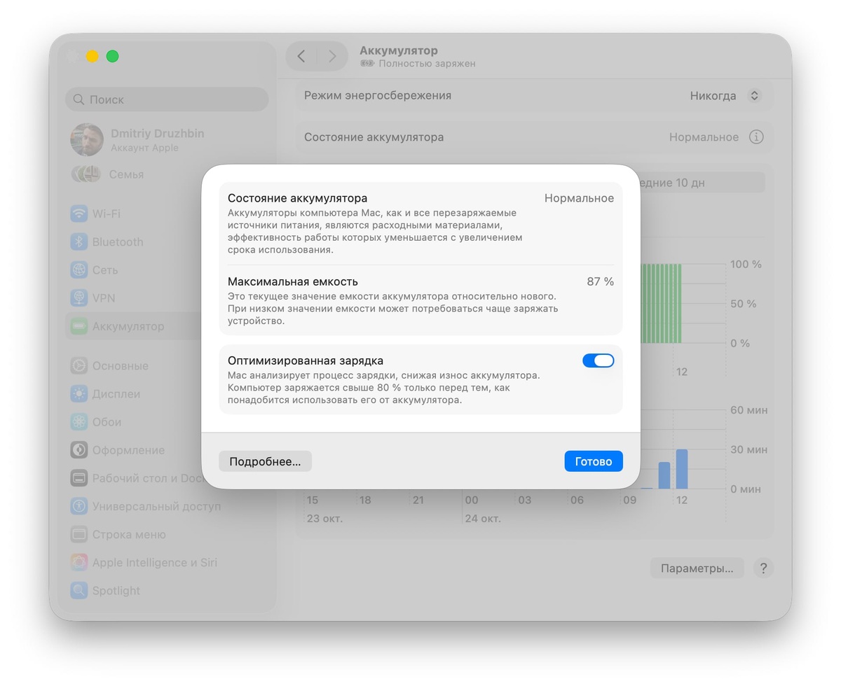 На днях Сергей Е. спрашивал в чатике у нас по стоимости замены аккумулятора в его Макбуке на базе процессора М1 (кстати, Сергей, а мы ответили?) и нас прямо удивило, что этот вопрос у него уже возник — к нам именно с заменами АКБ в этих машинах пока идут редко, а у него батарея деградировала уже до 76 процентов. Отсюда пятничный вопрос к владельцам машин на базе М1, M1 Pro и M1 Max — а какие значения батареи у вас? У нас вот 14-дюймовый MacBook Pro, пробег 426 циклов и здоровье 87 процентов. @fixed